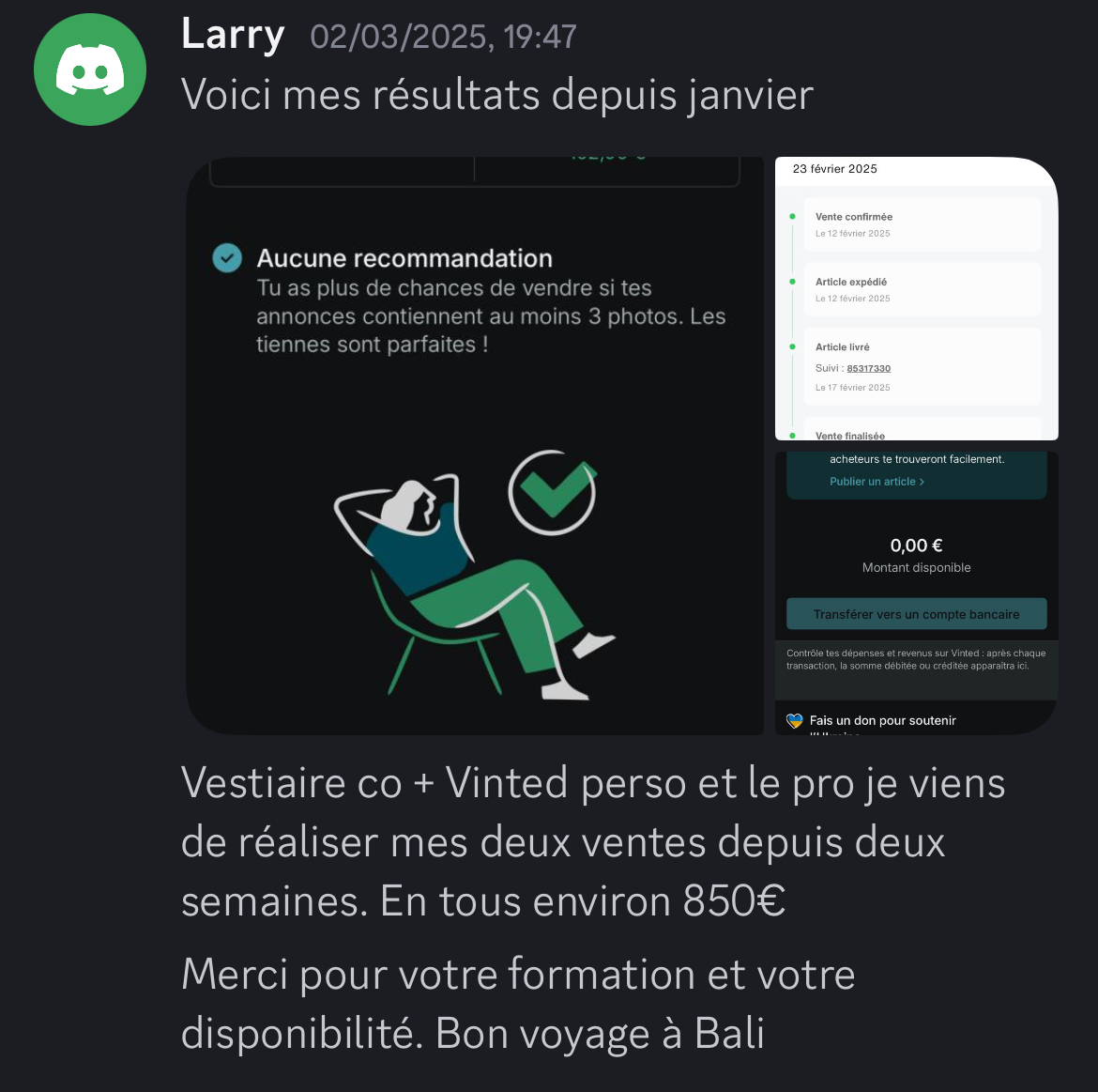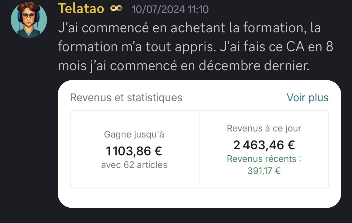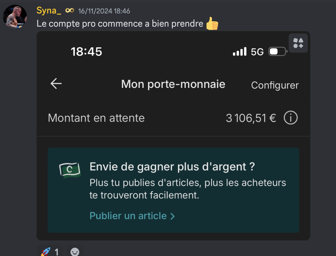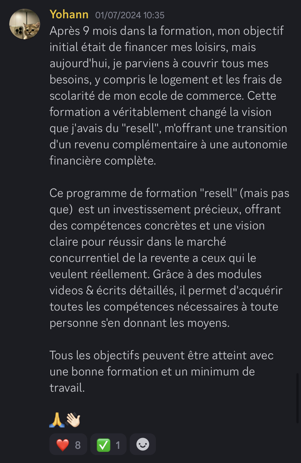 Certains membres font plus de 10 000 € de chiffre d'affaires. Ils sont également dans Resell Pro, et tu pourras bénéficier de leur expertise.