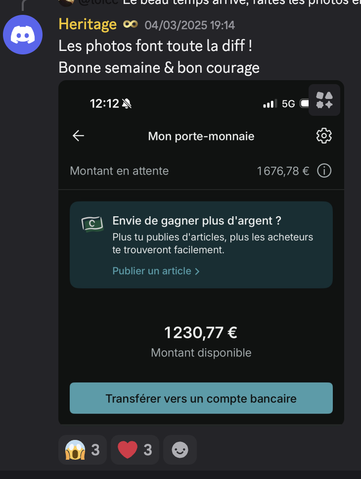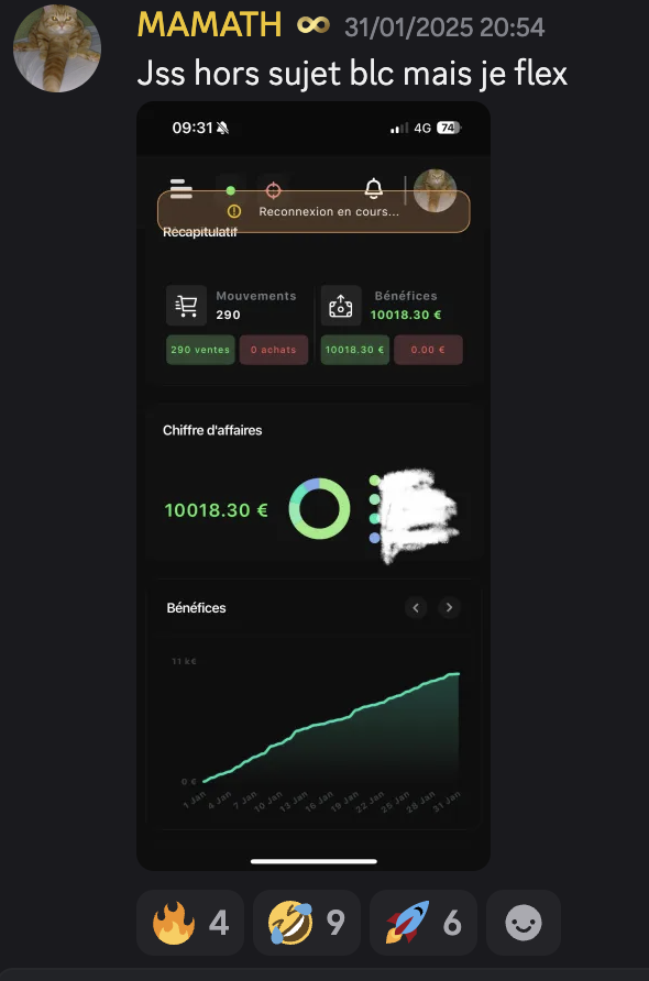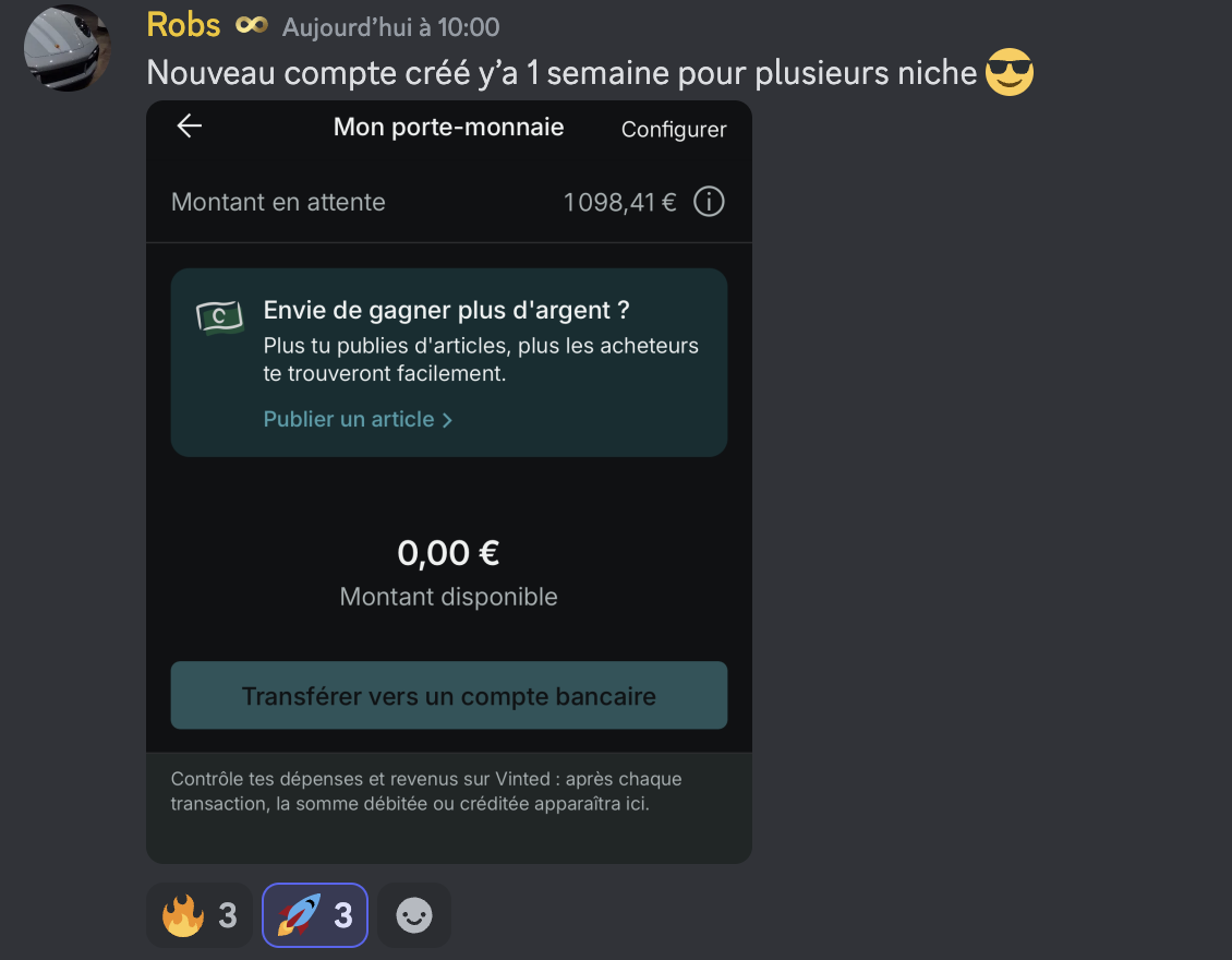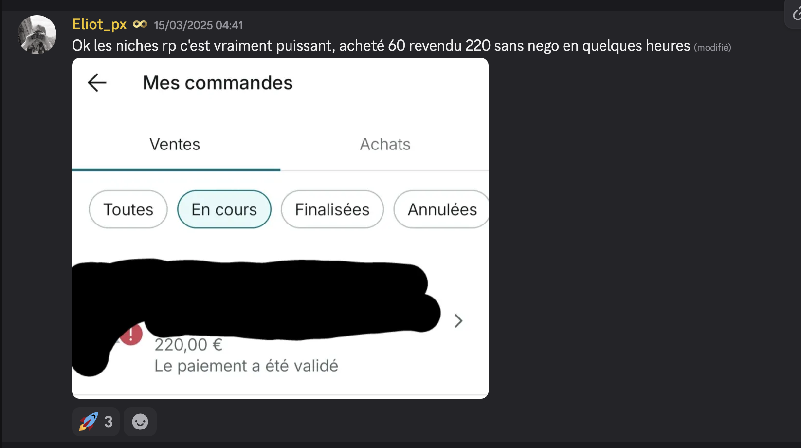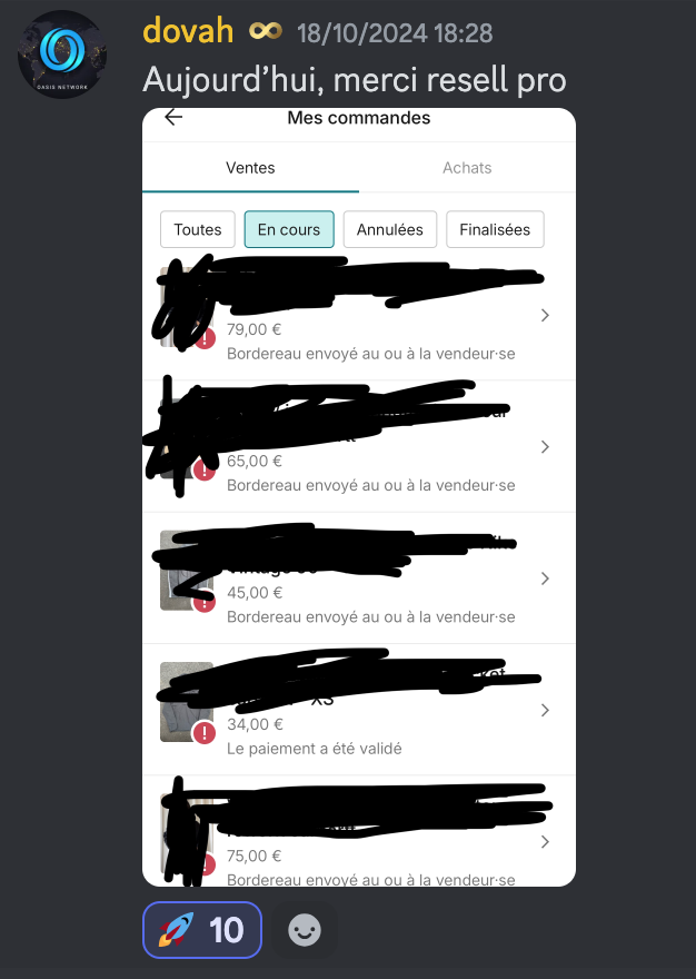 Certains membres font plus de 10 000 € de chiffre d'affaires. Ils sont également dans Resell Pro, et tu pourras bénéficier de leur expertise.