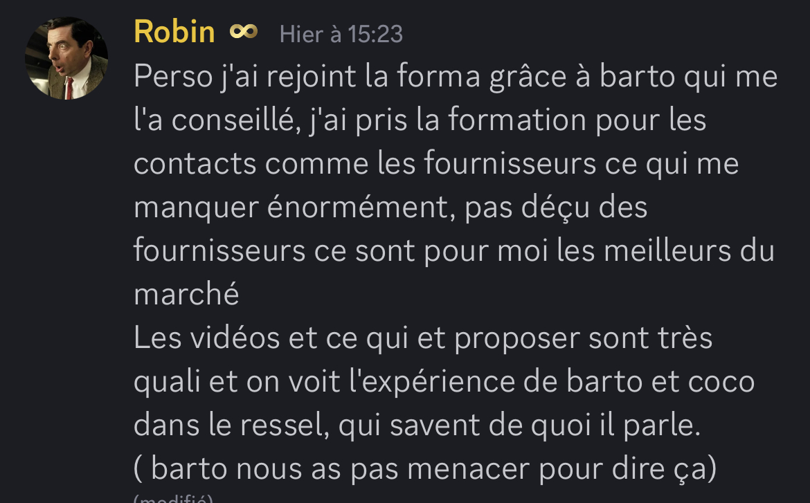 et accéder immédiatement aux meilleures niches, aux bonnes informations, à nos fournisseurs vérifiés et à une méthode claire qui fonctionne.